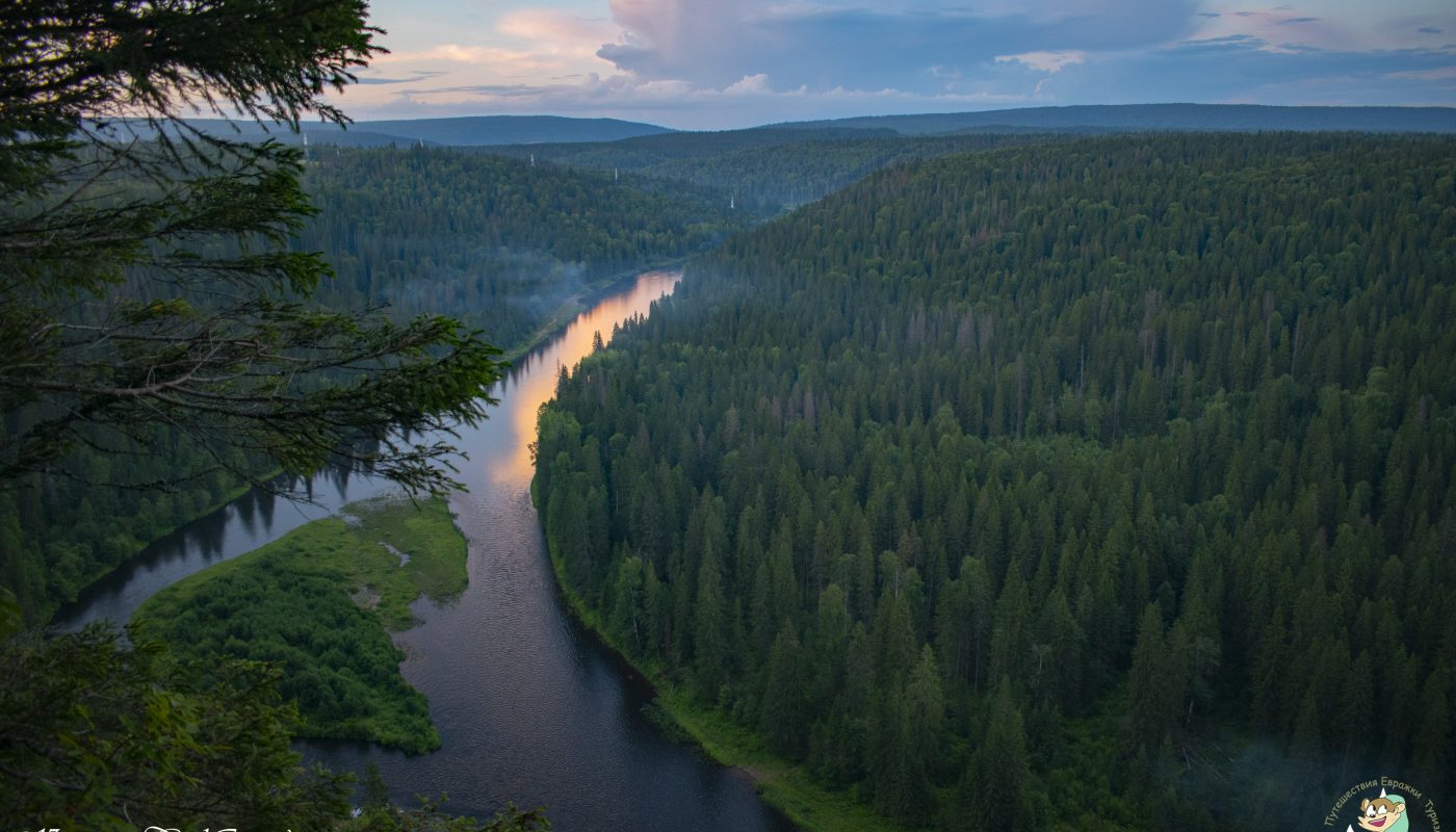 13:00 — Прибытие в поселок Усьва. Трекинг налегке от поселка до Столбов 5 км. ВАещи, снаряжение транспортируются на лодке. Восхождение на вершину уже со снаряжением!