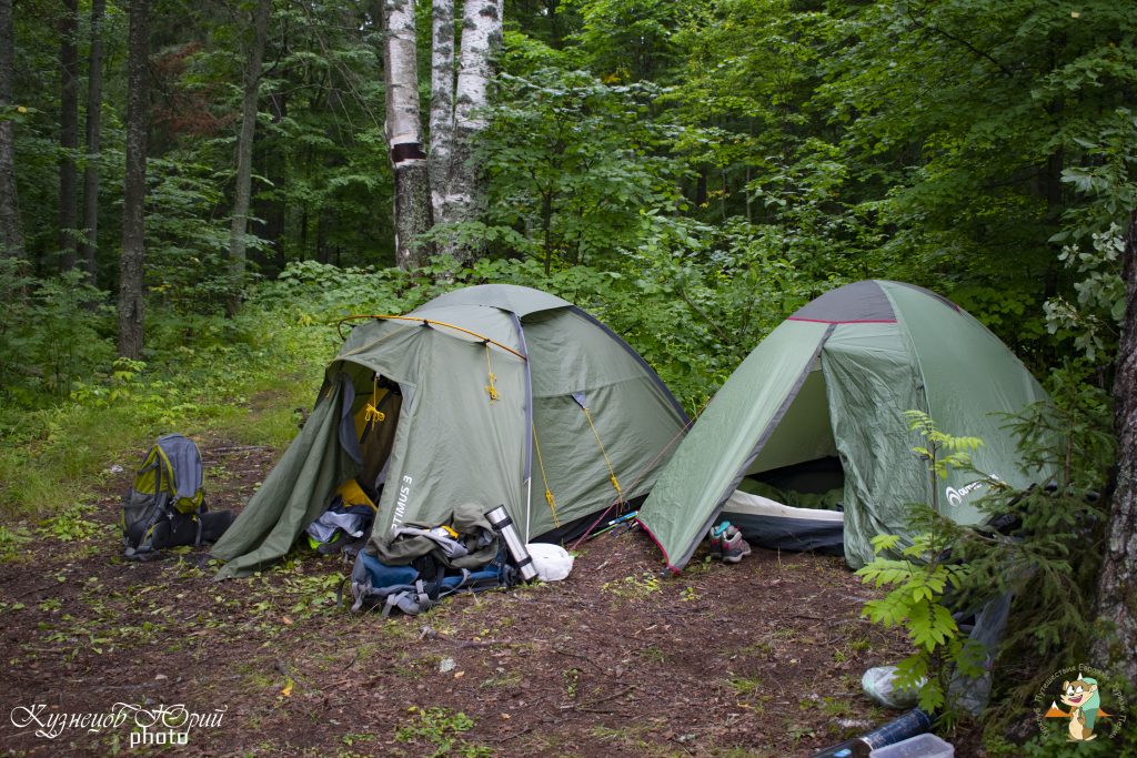 Поход на Усьвинские столбы с ночевкой на вершине, палаточный лагерь напротив скалы Чертов палец.