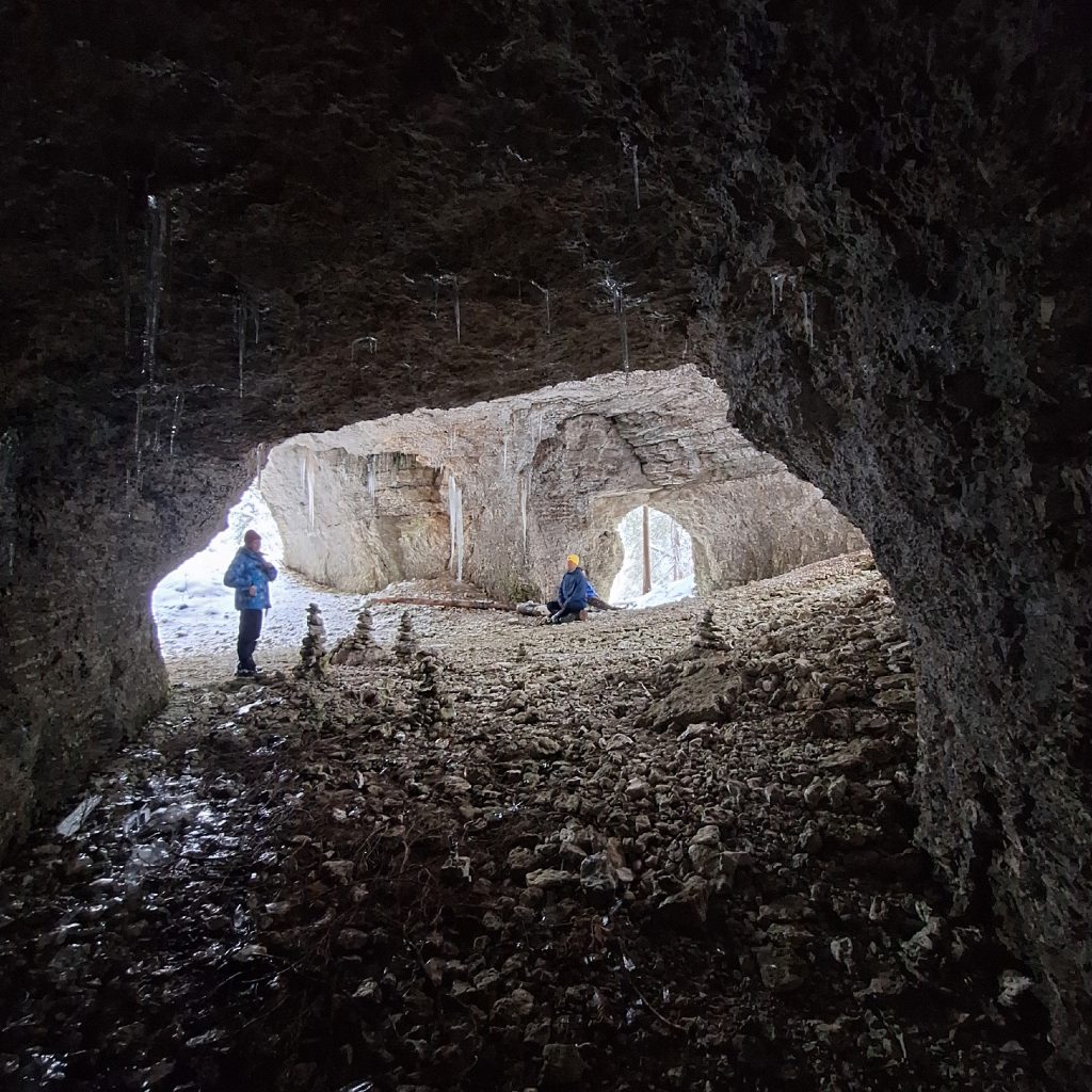 Малая арка известна как Талицкий грот, имеет деревянную избушку и смотровую площадку на своем «козырьке».