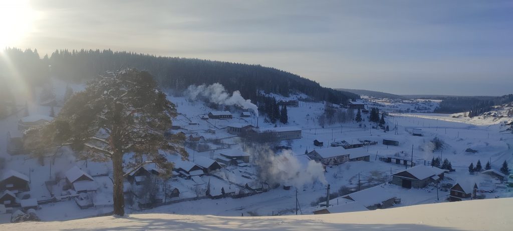 Старинные дома, спрятавшиеся на холмах за пушистыми елями, улицы, разбросанные по склонам лога. С одной стороны села- гора Мёрзлая, поросшая ельником. С другой стороны- гора- Плакун, одинокая, со скудным количеством сосенок. Останки железоделательного завода Строгановых… Полузабытый Свято- Троицкий храм (1864 г).