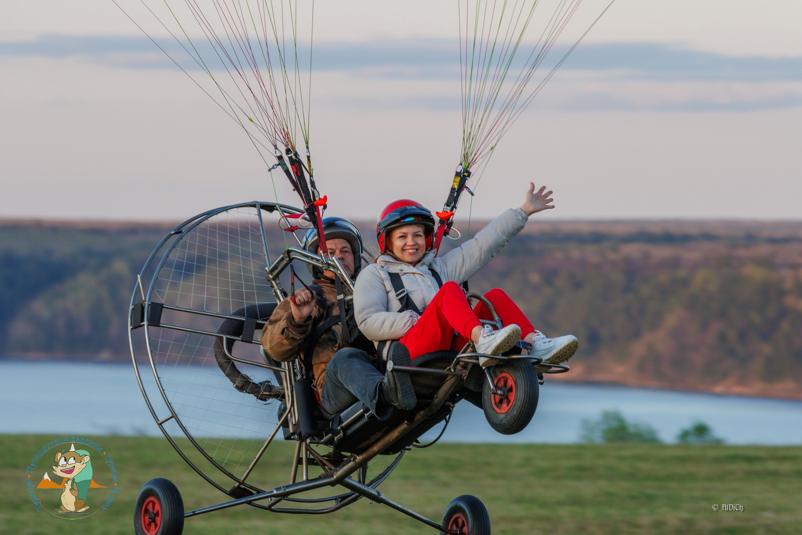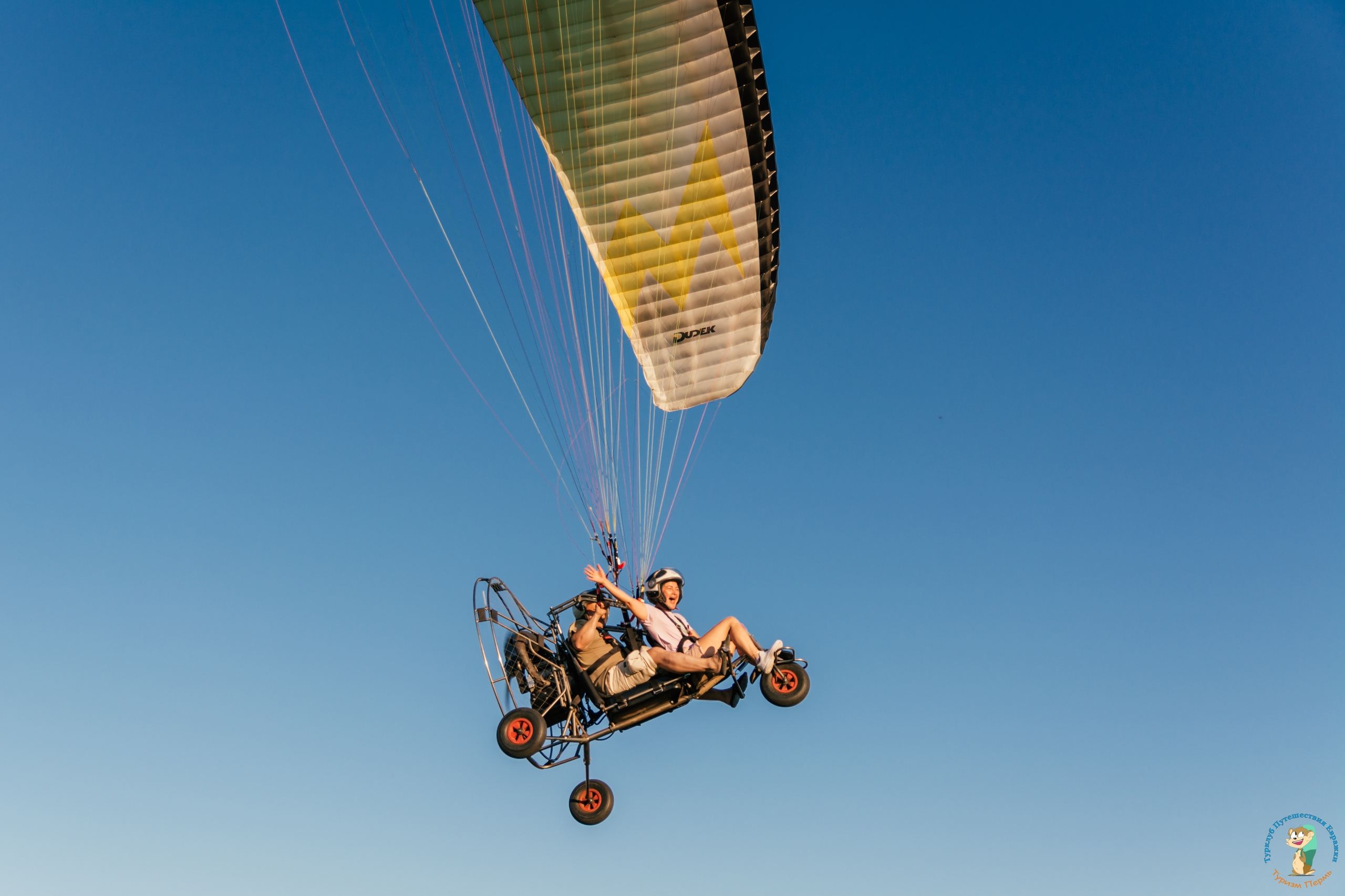 Невероятный полет на паралёте с инструктором, который включает в себя полет в любом выбранном Вами направлении, даже в вертикальном на высотах от 1 до 500 метров! Захватывающие виды! А также — пилотаж с заглушенным двигателем, «бреющий» полет окрестностей!